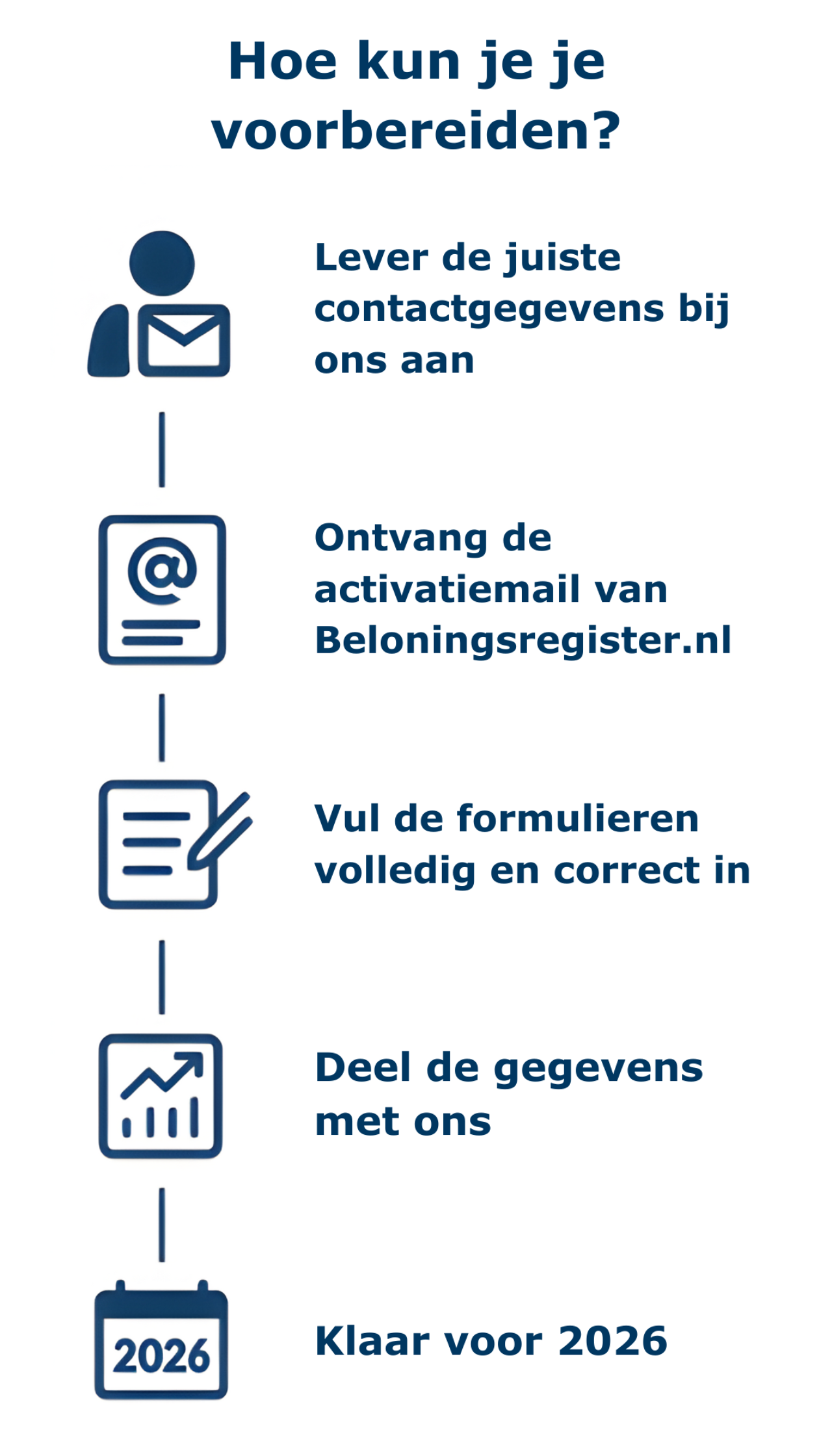 Zodra wij jouw contactgegevens hebben ontvangen, krijg je via onze partner Beloningsregister.nl een e-mail met de uitnodiging om een account aan te maken. - Vul de formulieren volledig in